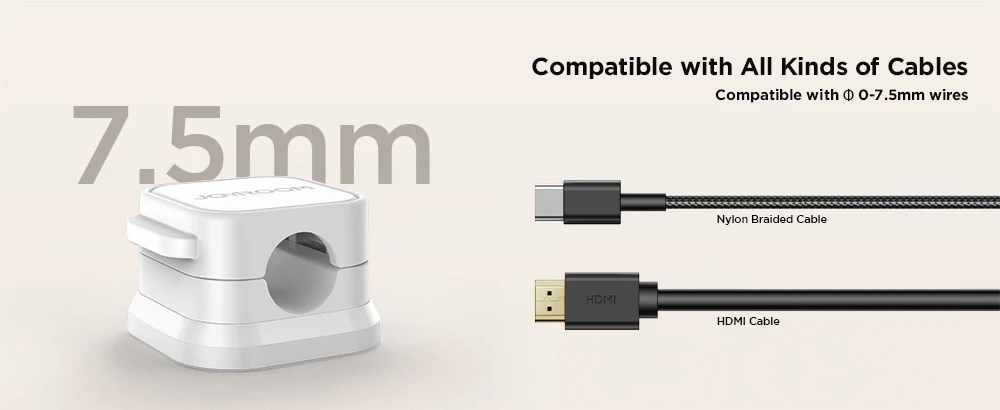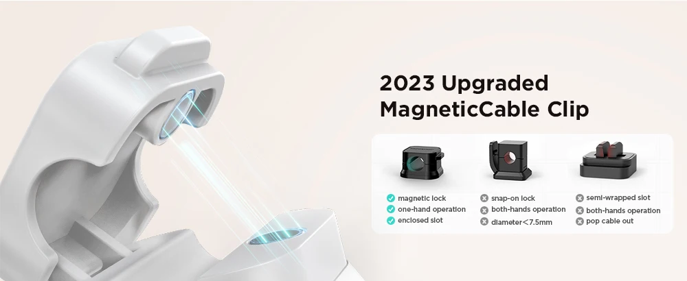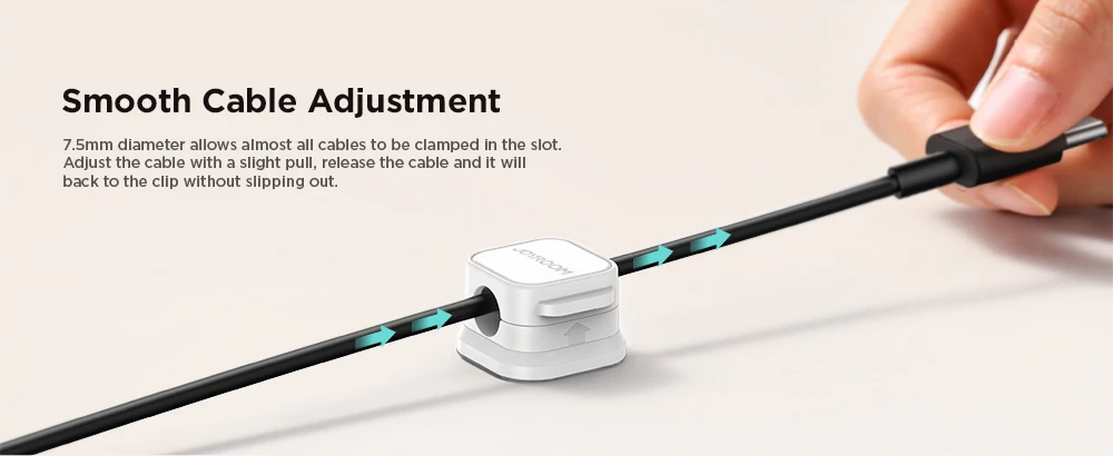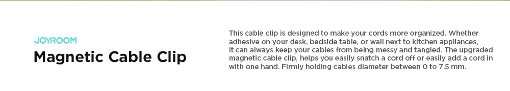 2.【Magnetic Clamp Design】The unique magnetic opening and closing cable clip design allows you to place and remove cables with only one hand. Unlike other cord holders on the market, Joyroom cable organizer uses a sophisticated 60° rotating shaft and magnetic locking cord design, helping you easily snatch a cord off or easily add a cord easily.