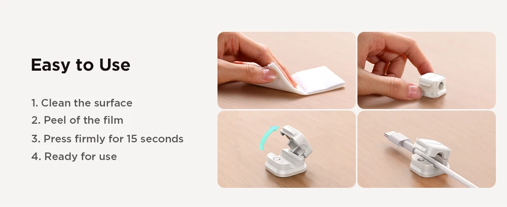 5.【Thoughtful Details】The ultimate width of 0.87 inch cord holder allows it to be firmly fixed in most narrow spaces. Joyroom cable organizer does not take up too much sticking area, and it can be perfectly hidden in any small corner you care about. [Kindly Installation Tips: Please clean the desired surface without dust before sticking, and keep pressing for 30 seconds to enhance the adhesion of the sticky pad. Highly recommend waiting for 12-24 hours for better use].