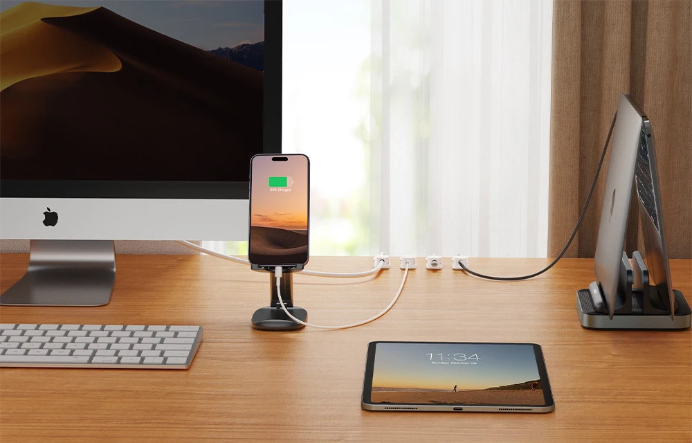 1.【7.5 mm Perfect Cable Slot Diameter】Diameter of 0.3 inches (7.5mm) can hold most cables, such as phone charging cables, USB cords, HDMI thick cables, computer power cords, etc. Besides that, the slot diameter of 7.5mm can perfectly hold a charging head as small as the iPhone original silicone charging cable without falling off, and the held cable can be pulled out smoothly for use.